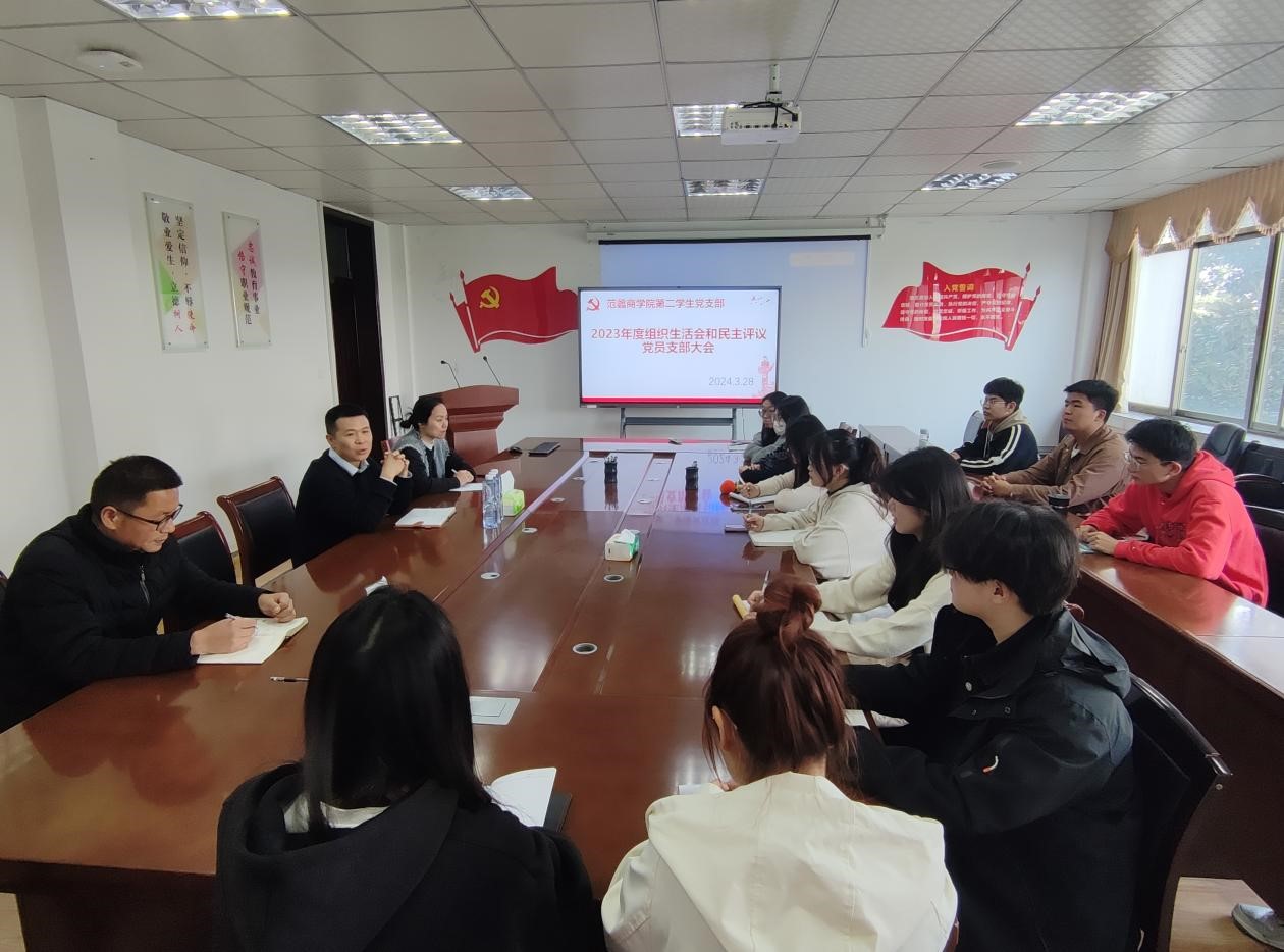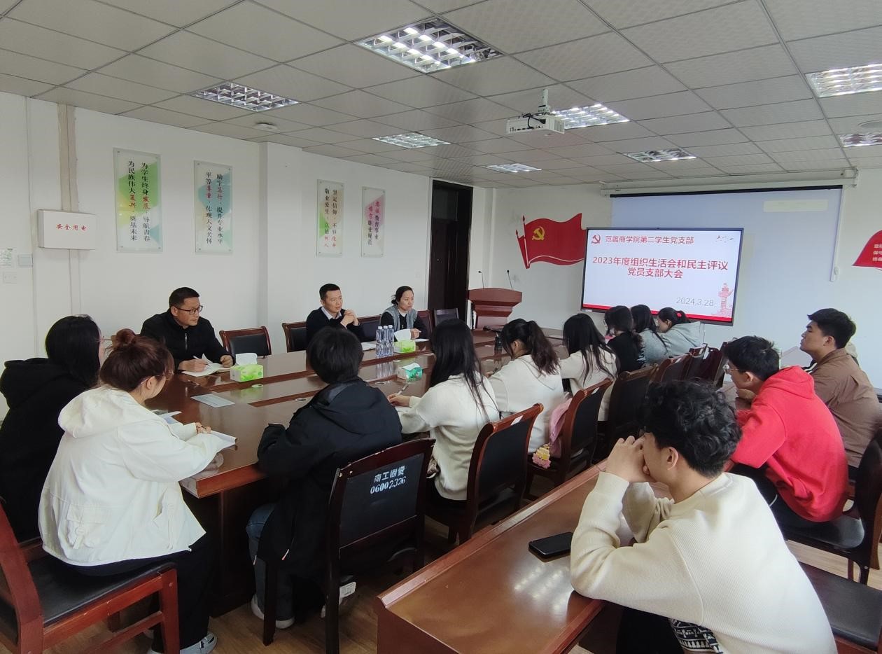 3月28日下午,第二学生党支部在1331会议室召开2023年度组织生活会和民主评议党员支部大会,会议由第二学生党支部书记董博主持,教师党员袁健、岳莉亚以及全体学生党员参加会议。
