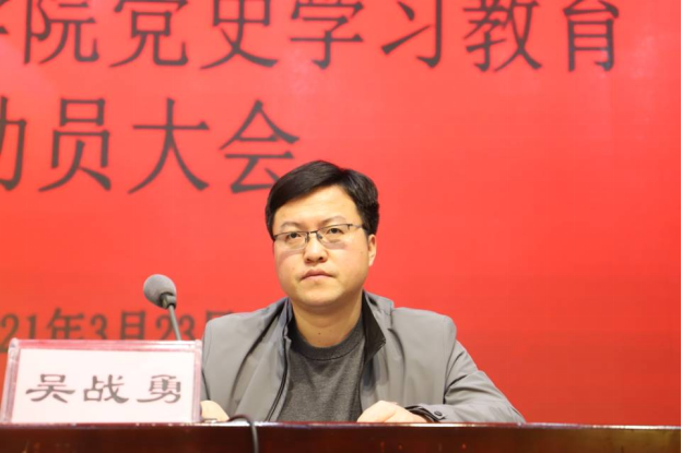 本网讯(通讯员/袁梦褚亦鉴)为深入学习贯彻习近平总书记在党史学习教育动员大会上的重要讲话精神,结合我校党史学习教育动员部署要求。3月23日,我院在领创空间召开党史学习教育动员会,会议由院长吴战勇主持,全体领导班子、教工党员和科级干部参加。