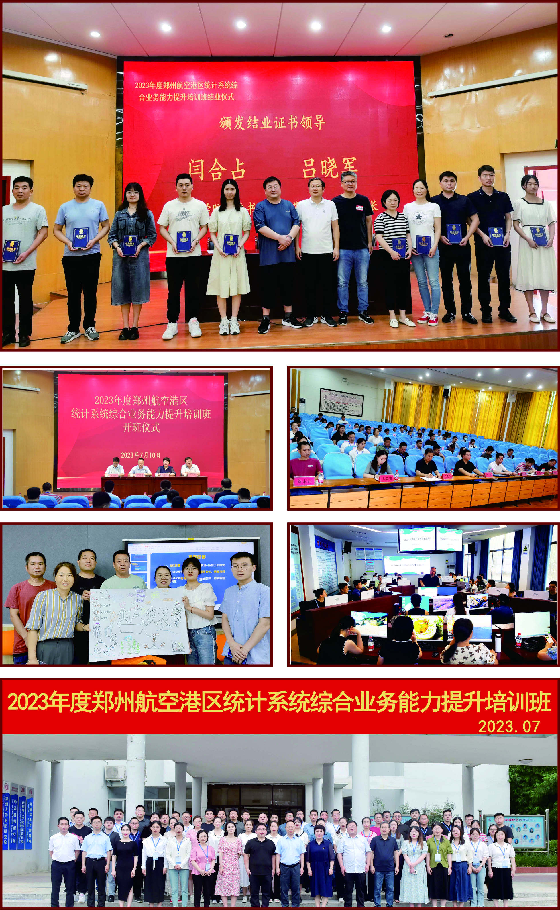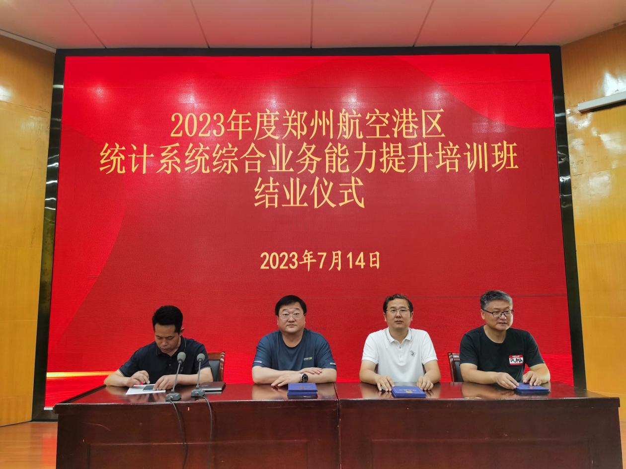 本网讯(特约记者/李浩)7月14日,在中关村报告厅举行2023年度郑州航空港区统计系统综合业务能力提升培训班结业仪式,yl6809永利官网集团党委书记闫合占、副院长吕晓军出席仪式并为学员颁发结业证书。
