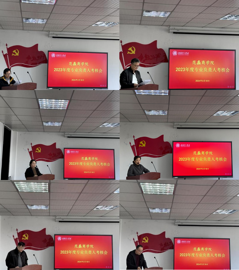 财务管理、市场营销、工商管理、国际商务、国际经济与贸易、电子商务六位专业负责人分别从专业基本情况、人才培养模式、师资队伍发展、专业与课程建设状况、教研教改成果、培养成果、工作中存在的不足和改进措施,以及下一学年的工作目标、思路和措施等方面围绕各专业本年度的具体情况作了汇报展示。