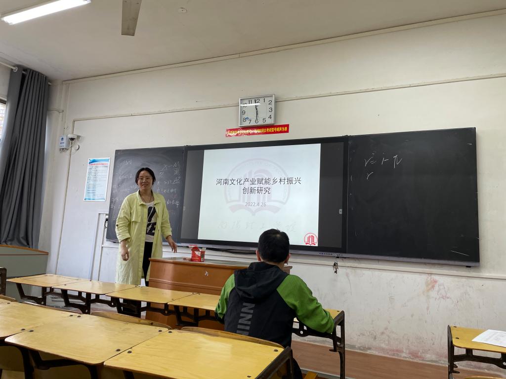 乡村振兴科研团队4月26日18:00在1510多媒体教室举行了科研团队学术活动。彭博做了主题为《河南文化产业赋能乡村振兴创新研究》的学术报告。