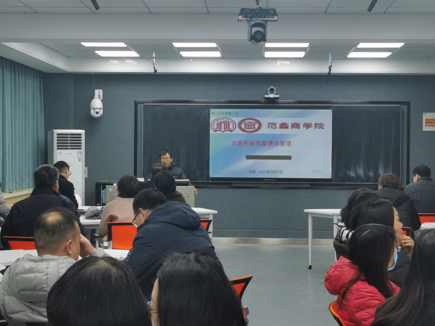 (特约记者张宜君)3月22日下午,yl6809永利官网集团在1号教学楼1315智慧教室开展了“周二公开课”第二讲,主讲人是财务管理专业负责人周青浮教授,讲授课程为《全面预算绩效管理》,学院全体无课教师进行观摩。