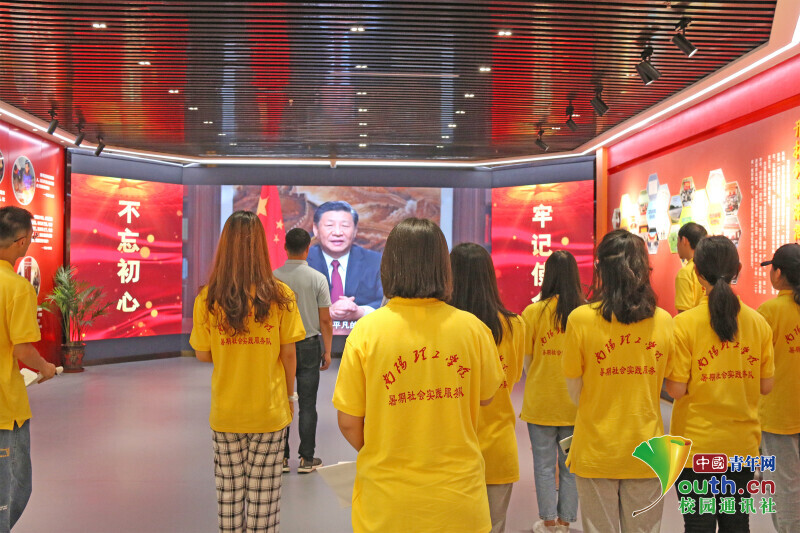 图为讲解员带领社会实践服务队参观第一书记活动中心。中国青年网通讯员 杨志豪 摄