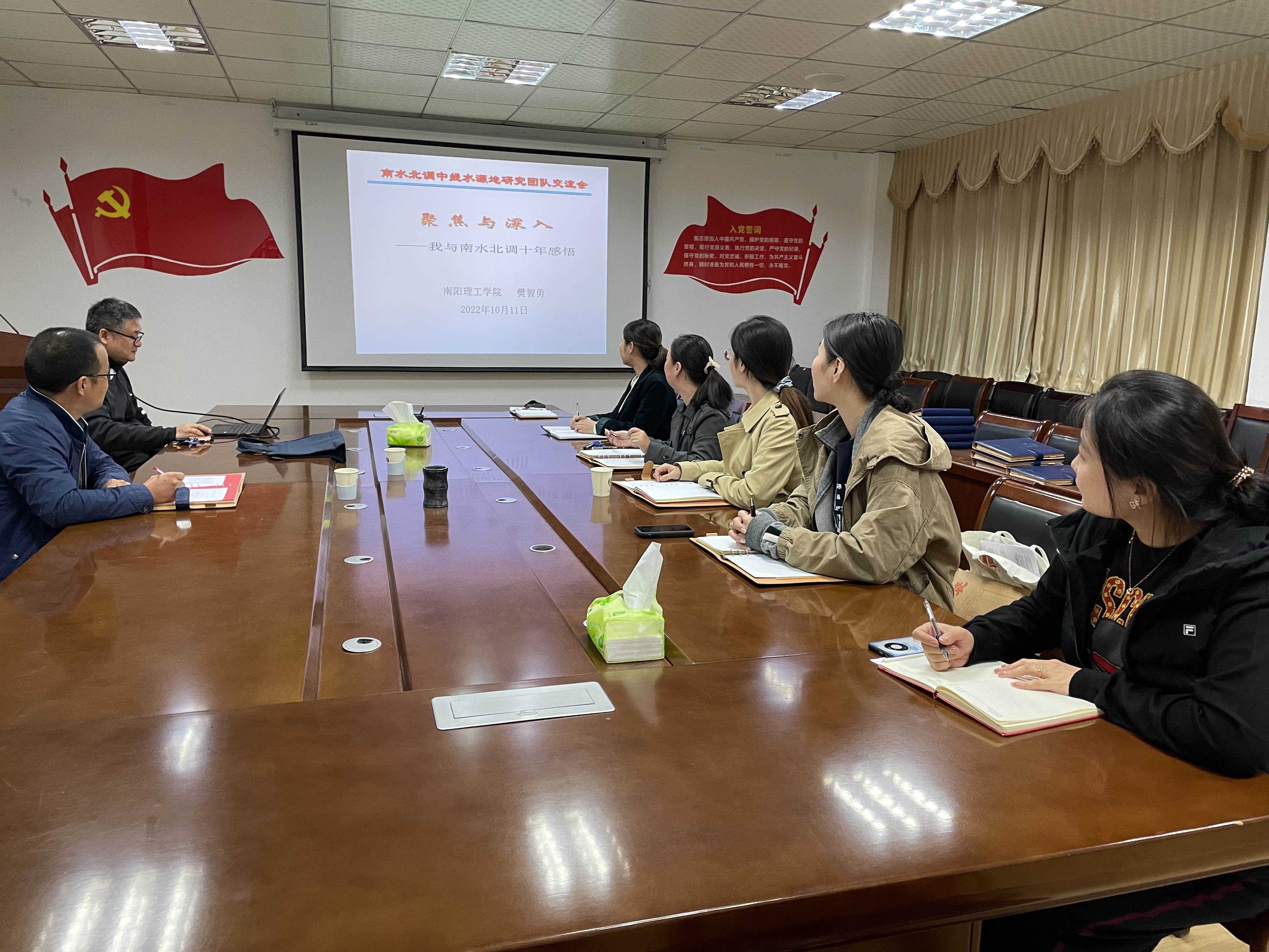 南水北调科研团队10月11日18:00在1331会议室举行了科研团队学术活动。樊智勇做了主题为《聚焦与深入--我与南水北调十年感悟》的学术报告,团队成员进行了深入的讨论。