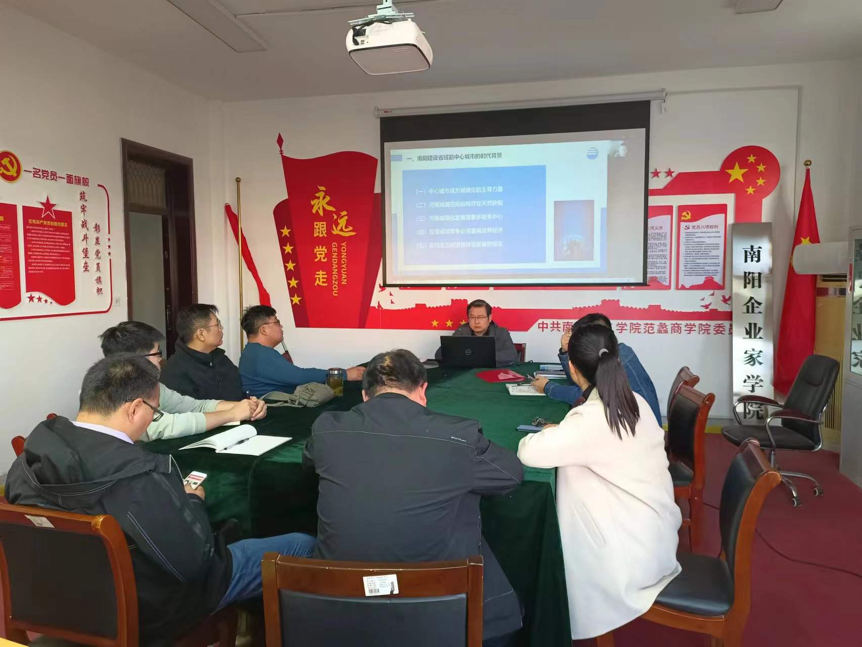 绿色发展科研团队10月11日18:00在1434会议室举行了科研团队学术活动。吕晓军带领团队成员学习河南省政协人口资源环境委员会副主任谷建全研究员做的《关于南阳建设省域副中心城市的几点思考》报告的视频,并作深入交流探讨。