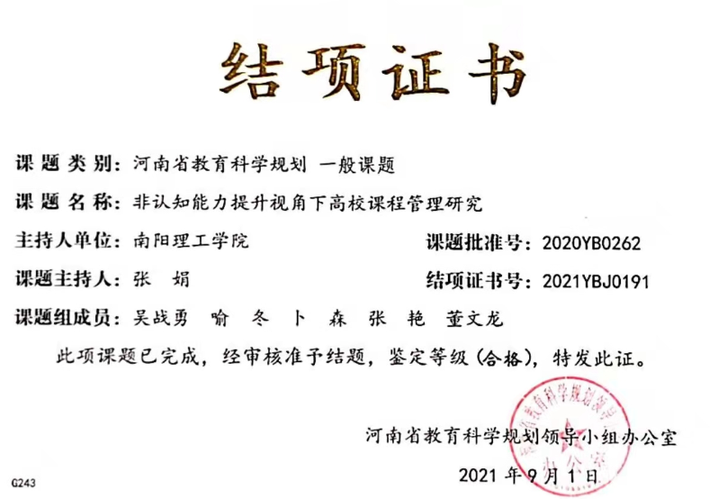| 省级 一等奖 | 2021.10 | 李玉 |