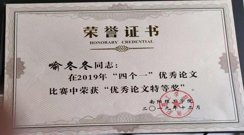 2019.12喻冬冬yl6809永利集团“四个一”优秀教改论文 特等奖