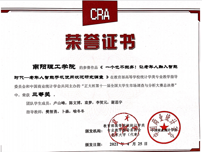 2021.4第十一届全国大学生市场调查与分析大赛三等奖