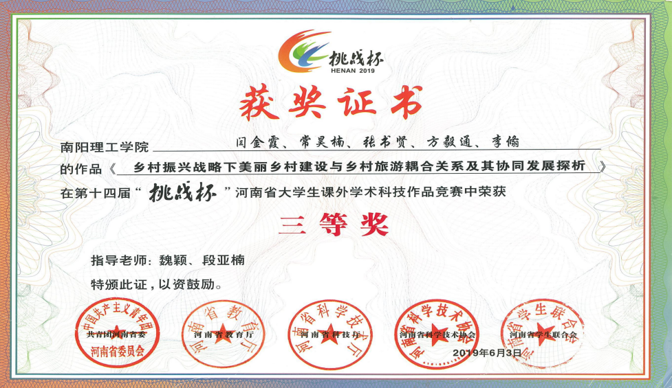 2019.6挑战杯大学生课外学术作品竞赛三等奖