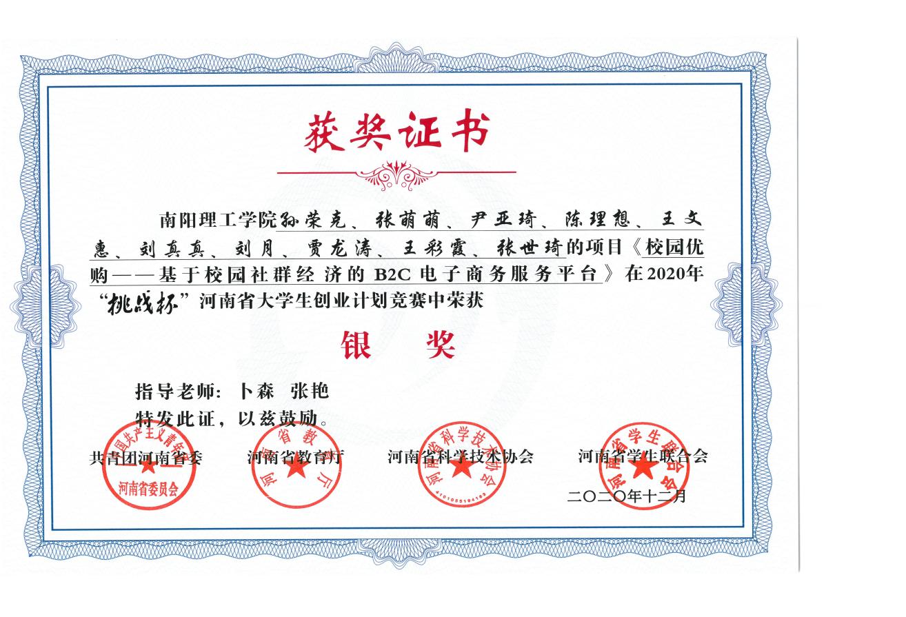 2020.12挑战杯河南省大学生创业计划竞赛银奖