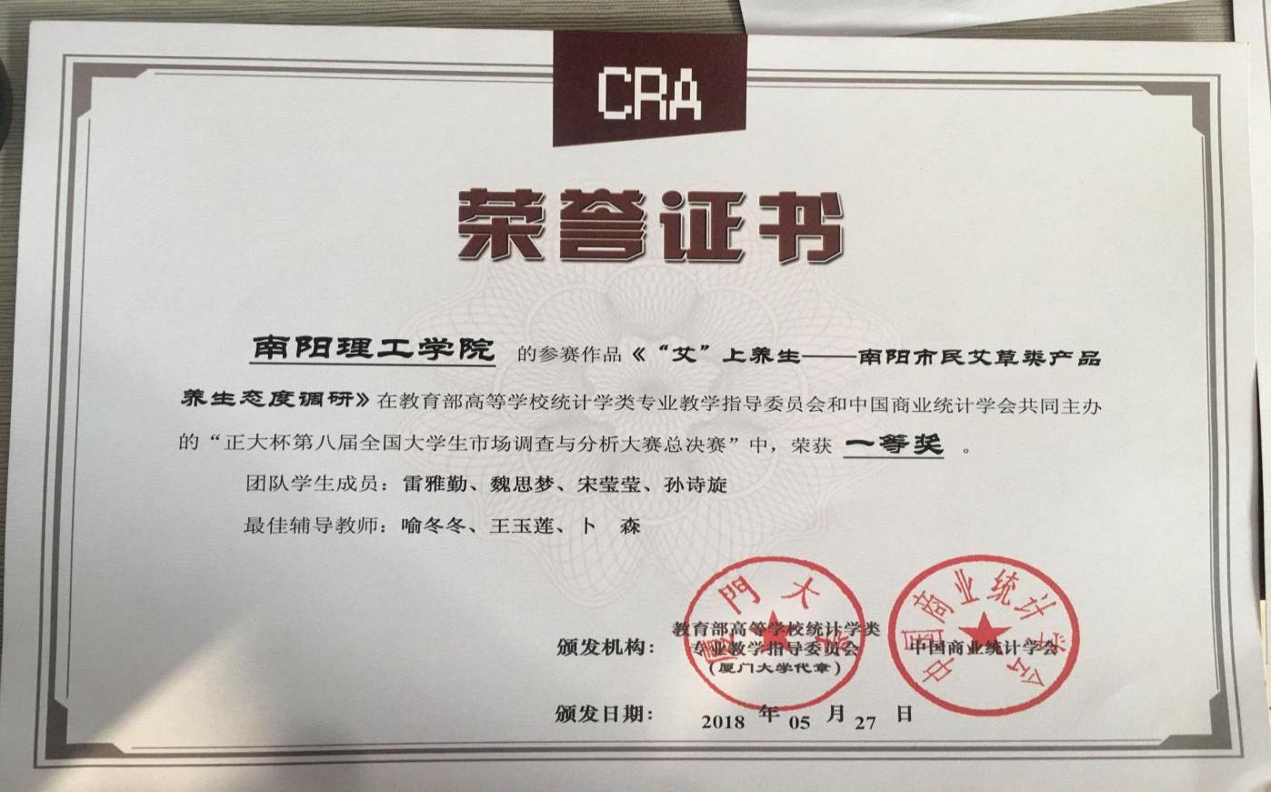 2018.5全国大学生市场调查与分析大赛三等奖