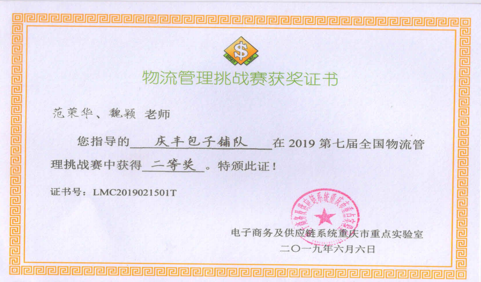 2019全国物流管理挑战赛二等奖