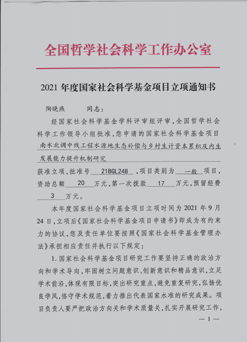 南水北调中线工程水源地生态补偿与乡村生计资本积累及内生发展能力提升机制研究(参与) |