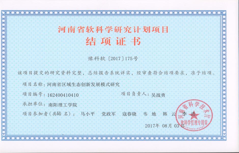 河南省重点研发与推广专项(软科学研究)“河南省区域创新能力时空分异特征及其差异化发展策略研究” |