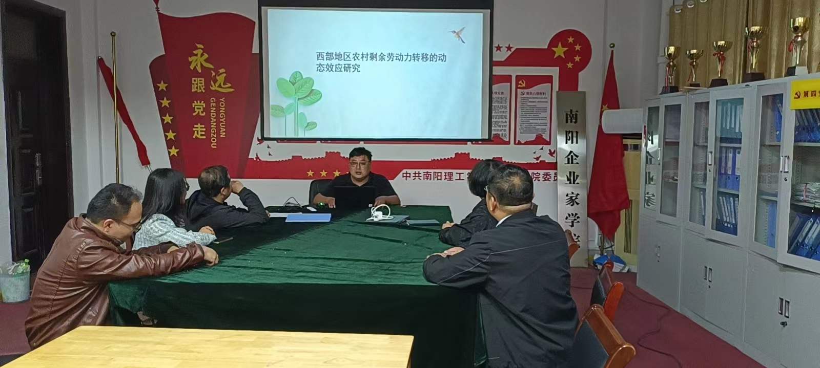 绿色发展科研团队10月25日18:00在1334会议室举行了科研团队学术活动。徐传武做了主题为《西部地区农村剩余劳动力转移与回流的动态效应研究》的学术报告,团队成员进行了深入的讨论。