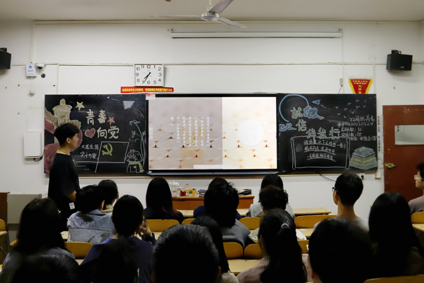 本网讯(通讯员/李昊泊)为进一步落实“诚信人生、知恩感恩、爱国爱党、青春奋进、励志成才”教育,引导受助学生学习贯彻党的二十大精神,凝聚诚信共识,营造诚实守信、感恩奋进、爱国爱校的校园文化氛围。5月7日晚,我院于1号教学楼举办“青春心向党,诚信伴我行”主题班会,22级全体学生参与。