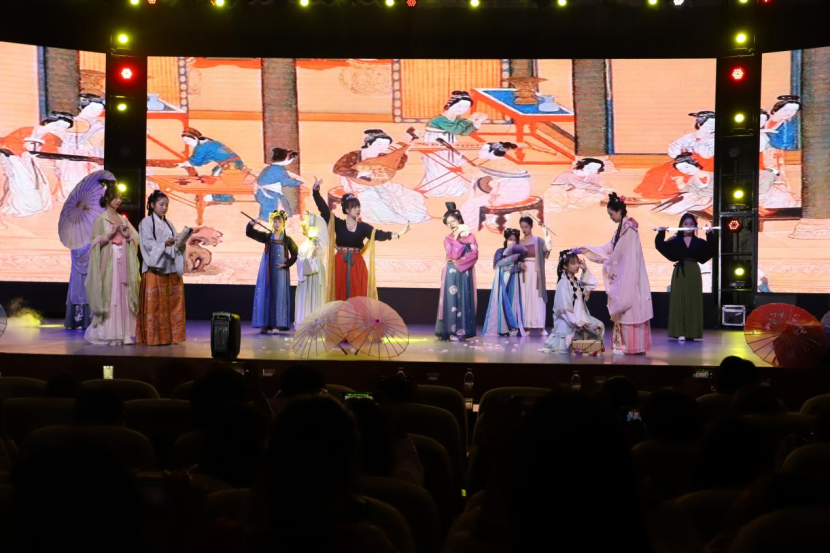 昔玦汉韵社“汉韵华风·小得盈满”汉服专场晚会从多个角度展现了中国古代文化的博大精深与瑰丽绚彩,引领学生自觉接受优秀传统文化熏陶,有效推动了中华优秀传统文化的传承与弘扬。(摄影/李昊泊编审/张清慈审核/张雨爽)
