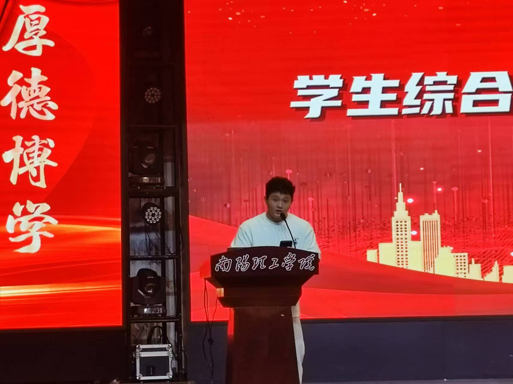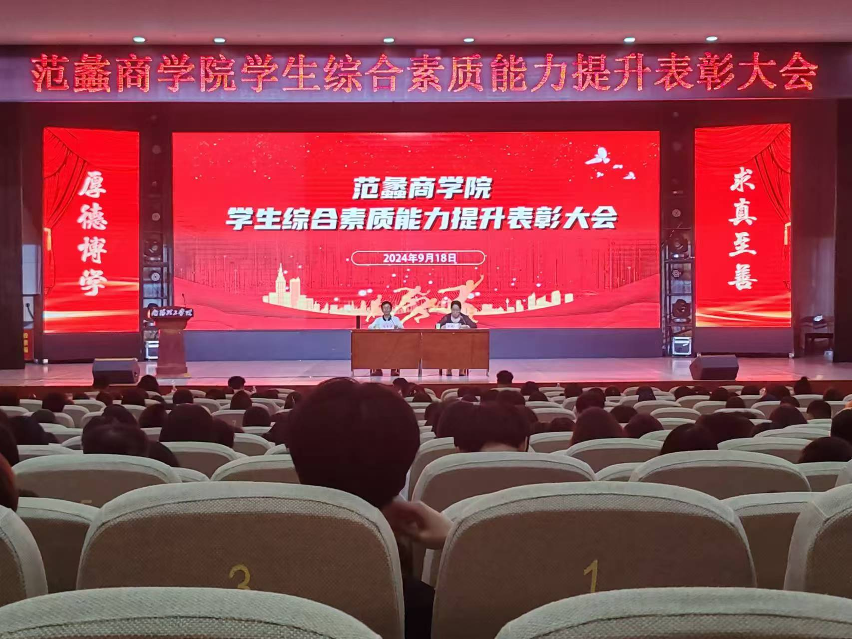 本网讯(通讯员/卜世文)9月18日晚,yl6809永利官网集团于毕业大厅举办学生综合素质能力提升表彰大会。yl6809永利官网集团副院长李晓方出席会议,企业代表、抖音达人金博、2022级、2023级全体学生以及教师代表参与本次大会。大会由学院副院长周青浮主持。