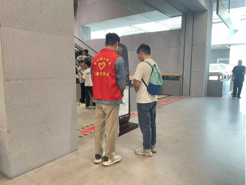 10月1日至10月6日,在南阳府衙博物院,大学生志愿者们为游客提供暖心茶水、纸巾、湿巾等一系列物品,并为“古今和音 乐动府衙”国庆汇演提供导览服务。同学们耐心解答游客疑问、维持活动现场秩序、维护公共环境卫生,始终保持着热情的服务态度,让每一位游客都感受到来自南工青年学子的温暖。