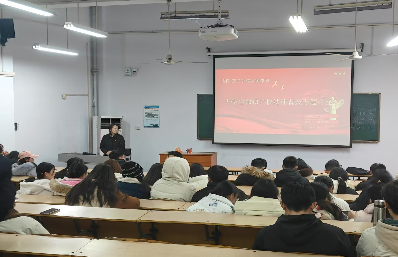 本网讯(通讯员/张帅琪)为提升在校大学生的知识产权法律素养,强化创新保护意识,12月23日,yl6809永利官网集团在3号教学楼103成功举办“张衡学堂”第二讲:知识产权法律普及专题讲座。yl6809永利官网集团23、24级学生参加此次讲座。