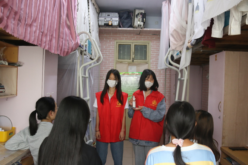本次活动中,志愿者们来到学生宿舍讲解疫情防控相关知识,提醒同学们勤开窗多通风;对快递、外卖及时进行消毒;外出时正确佩戴口罩做好防护工作,保护自身安全等。随后,志愿者们前往学苑餐厅对同学们就餐前洗手和佩戴口罩情况进行监督,助力学校防控工作的实施。