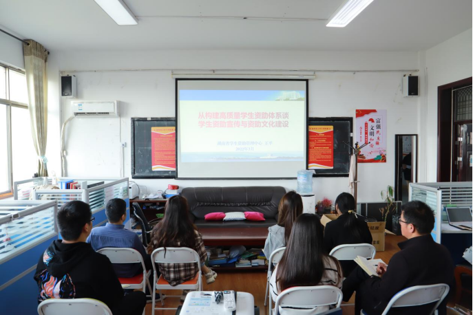 (特约记者/张卓娅)为进一步强化学生资助工作精准化建设,拓宽学生资助工作思路与视野,构建发展型资助育人体系,推进新时代高校学生资助工作高质量发展。3月26日、27日根据学校学生资助管理中心要求,组织各学院党委副书记、团学办主任、资助专干老师参加了中国高等教育中心举办的《高校学生资助工作规范化管理与资助育人机制模式创新专题研讨会》线上培训。为更进一步高质高效推动学院学生资助工作发展,更深层次凝聚学工队伍对于学生资助工作共识,达到上下齐心、共同努力的学生资助工作的良好局面,我院于4月5日在辅导员办公室召集全体辅导员老师共同观看此次研讨会的直播回放及课件。