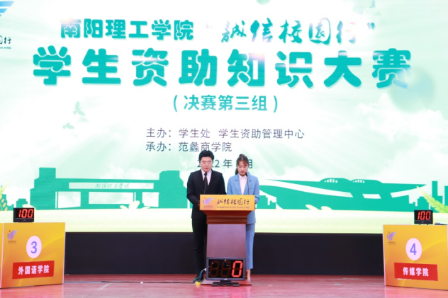 本网讯(通讯员/张清慈)为进一步提升新时代大学生的诚信意识,营造诚实守信的良好氛围,更好的展现当代大学生自强自立、担当奉献、昂扬向上的精神风貌。根据《河南省教育厅中国人民银行郑州中心支行中国银行保险监督管理委员会河南监管局国家开发银行河南省分行关于举办河南省大学生“诚信校园行”学生资助知识大赛的通知》(教资助〔2021〕327号精神),我校于3月23日上午成功举办大学生“诚信校园行”学生资助知识大赛第三组决赛。