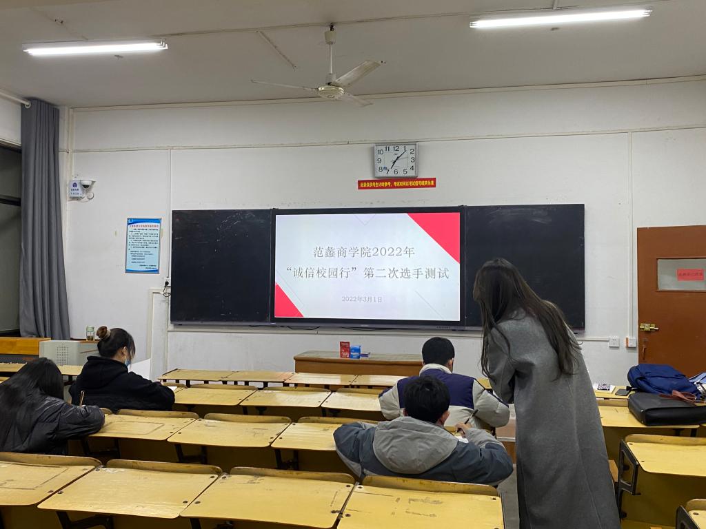 本网讯(通讯员/桑文晓马宇函)为积极宣传学生资助政策,培养大学生的诚信意识,充分展现我院学生明德立信、自立自强、拼搏向上的青春风采。同时,也为今年的“诚信校园行”校决赛和省赛打好基础,做足准备。3月1日晚,yl6809永利官网集团于1529教室举行2022年“诚信校园行”第二轮选手测试。资助专干老师张卓娅监考。