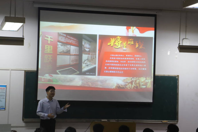 活动开始由主持人引出”传承色基因 弘扬革命文化“的活动主题,并向现场观众介绍此次比赛流程及评委。参赛选手通过精彩纷呈的讲解、卓有成效的PPT和令人激情澎湃的音乐将比赛氛围推向高潮。其中,汪安康对刘邓大军挺进大别山拉开了战略进攻的序幕进行了详细的介绍,并呼吁大家铭记历史,弘扬先辈们为我们所留下的革命文化。