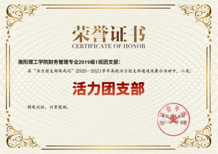 在个人方面,团支部成员也有着突出的表现,其中,吕世豪同学在学生工作方面,担任19财务管理1班班长、19级年级长、学生会组织部副部长、青马读书会秘书长、青马学堂负责人等,同时获得河南省第十二届“挑战杯”大学生创业计划竞赛银奖等多项奖项;杨淑芬同学担任19级财务管理1班团支书、学院雷锋连指导员、南阳博物馆yl6809永利集团志愿服务队队长;李洪洋同学担任学生会营销与策划协会宣传部副部长,同时获得了第十五届“挑战杯”河南省大学生课外学术科技竞赛作品二等奖等共五项奖项;李盼同学担任校学生资助服务委员会主席,获得2021全国高校经济决策虚仿实验大赛国家总决赛三等奖。他们用实际行动为团支部其他成员做着表率,充分发挥着模范带头作用。