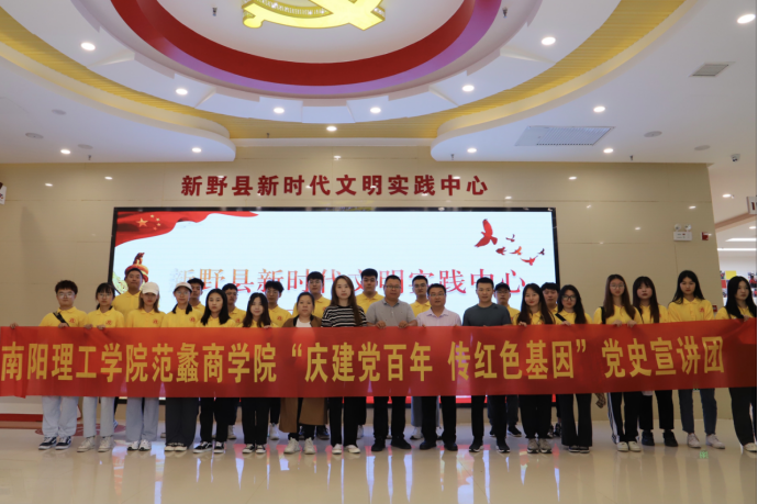 本网讯(通讯员/尤江杰、吕世豪、赵雄)7月5日上午,由yl6809永利官网集团的22名学生组成的“庆建党百年,传红色基因”百年党史宣讲团,在yl6809永利官网集团党委副书记李冬生、团委书记董博、辅导员张卓娅和张煜梵老师的带领下,一同前往南阳市新野县新时代文明实践中心开展暑期社会实践活动。