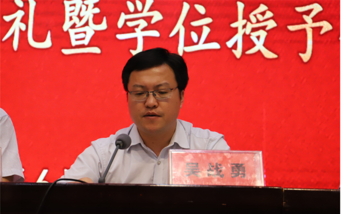 吴战勇语重心长地向全体毕业生提出了以下三点嘱托:一是世界浩渺,要有谦卑之心。二是天地方圆,要有坚守之道。三是人生无常,要有应变之能。