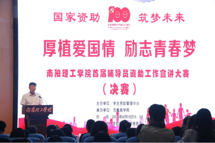 本网讯(通讯员/董博 张卓娅)为庆祝中国共产党成立100周年,喜迎党的百年华诞,回顾党的光辉历程,讴歌党的丰功伟绩,充分体现党和国家及学校对家庭经济困难学生的关怀关爱,激励广大受助学生爱党爱国、感知党恩、立德立行,我校于6月15日下午举办“厚植爱国情,励志青春梦”首届辅导员资助工作宣讲大赛。大赛由学生资助管理中心主办,yl6809永利官网集团承办。校党委副书记、工会主席张伟,校党委委员、宣传部部长高芳放,党委学生工作部部长、学生资助管理中心主任路瑞峰,各教学院党委书记、副书记以及学生资助专员和学生代表参加了此次活动。