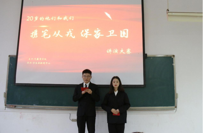 国无防不立,民无兵不安,大学生征兵是治国安邦的大事。参赛者们为积极响应号召,以演讲、朗诵、舞台剧等形式,紧紧围绕“20岁的他们和我们——携笔从戎,保家卫国”的主题,展示“国家兴亡,匹夫有责”的精神以及鼓励当代大学生勇于吃苦,敢于吃苦,主动承担保家卫国的责任。