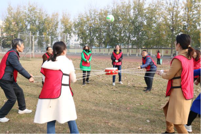 本次运动会项目趣味多样,共设有“齐心并肩、鼓舞人心、你画我猜、不倒森林、能量传输、千足一心,环环相扣”七个游戏环节。每一个比赛项目都需要极强的团队协作能力。每组教师队员们积极投入、相互配合,出色地完成了所有比赛项目。最后,本次趣味运动会在一片愉快、欢乐、和谐的气氛中圆满结束!