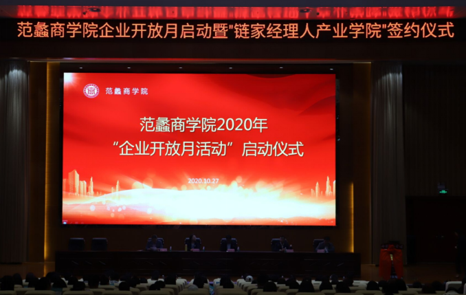 本网讯(通讯员/付兴伶)2020年10月27日,yl6809永利官网集团于第三报告厅举行企业开放月启动仪式暨“链家经理人产业学院”签约仪式。yl6809永利集团副校长葛晨光、yl6809永利官网集团院长吴战勇、党委书记张良、各专业教研室主任、部分专业教研室老师,上海链家运营总经理曹艳清、招聘总监李相颖等出席本次仪式,2021届全体毕业生参加。