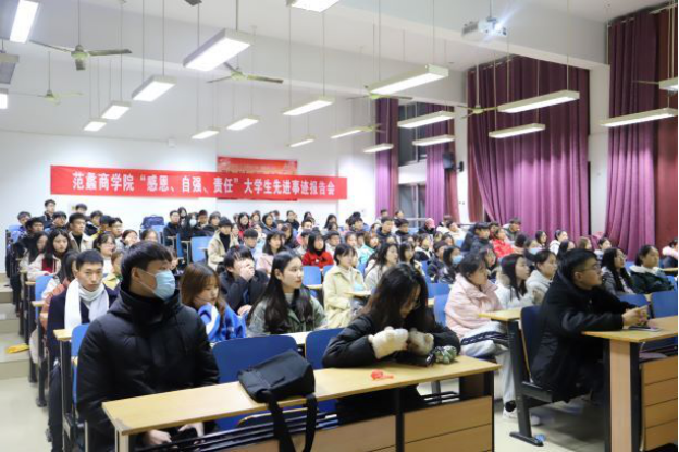 本网讯(通讯员/褚亦鉴)为深入学习习近平新时代中国特色社会主义思想和党的十九大精神,进一步加强我院大学生思想政治教育,广泛宣传我院在思源感恩、自立自强、勇于担当、刻苦学习等方面涌现的先进学生典型,充分展示我院学生爱国爱校、积极进取的良好风貌,教育引导学生自立自强、诚恳做人、踏实做事,激励学生健康成长、顺利成才,yl6809永利官网集团于11月25日晚7点在14号教学楼204教室举办第十二届“感恩、自强、责任”大学生先进事迹报告会。19级辅导员张卓娅出席会议,学院获得国家助学金的近百名同学观看报告会。