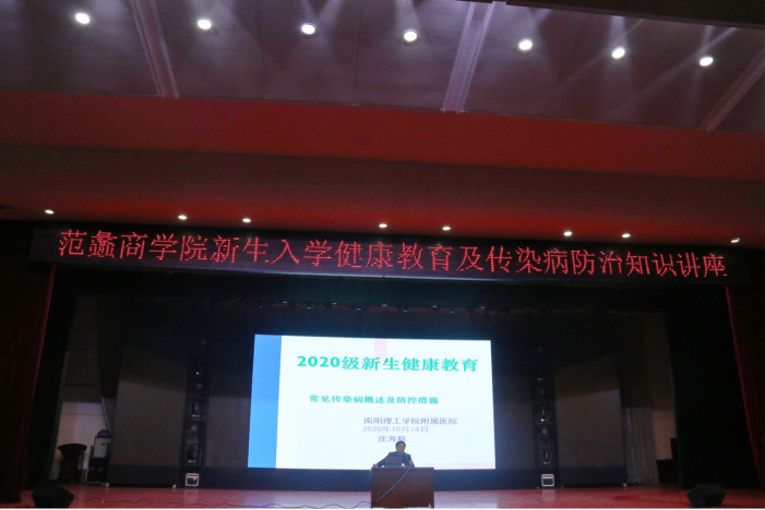 本网讯(通讯员/孙健、徐雨萌)为了提高当代大学生传染病防治意识,打造安全健康的校园环境,11月9日yl6809永利官网集团在毕业大厅举办“新生入学健康教育及传染病防治知识讲座。”本次活动由yl6809永利集团附属医院庄海新医生主讲,yl6809永利官网集团全体新生参加本次讲座。