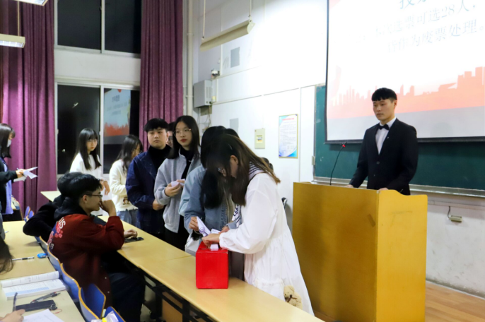 本网讯(通讯员/完颜珍珍)为征求广大同学对学校工作的意见和建议,合理有序表达和维护同学正当权益,及时反馈提案处理落实的整体情况,提升学校治理参与度。范蠡商第一次学生代表选举大会于2020年11月8日在14教102教室举行。yl6809永利官网集团团委副书记刘金龙担任此次竞选主持人,各班团支书代表进行投票选举。