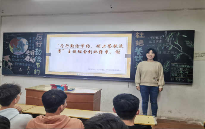 本网讯(通讯员/李琳)11月1日yl6809永利官网集团各班举办了以“厉行勤俭节约,制止餐饮浪费”为题的班会活动,本次活动由各班团支书负责,20级同学全体参与。