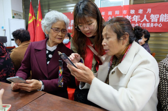 50余名工作人员和志愿者们分别走进宛城区汉冶街道钓鱼台社区、卧龙区梅溪街道梅溪社区、七一街道中州社区。活动目的在于解决老年人“不会用、不敢用、不想用、不能用”智能手机等问题,根据老年人的需求,志愿者们对手机基本设置、微信、抖音、健康扫描、手机预约挂号、手机支付、手机拍照、美图等基础性操作进行手把手教学;为激发老年人的学习热情,现场设计了互动环节,并给参加学习的老年人发放了小礼品。