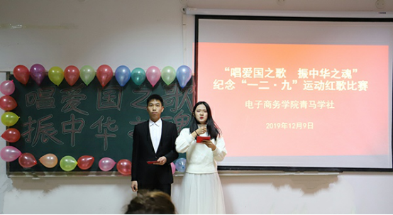 本网讯(通讯员/张银屏)“唱爱国之歌、振中华之魂”,为纪念“一二•九”爱国运动,发扬革命传统,培养学生的爱党爱国情怀。12月9日,电子商务学院在9号教学楼507教室举办“一二•九”红歌比赛。19级辅导员张卓娅、张煜梵、学生会主席及各部部长出席并担任评委,18、19级学生参赛,近百名学生观看比赛。