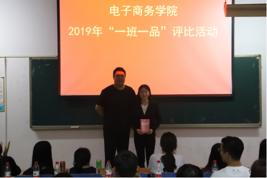 6月14日,在班级“一班一品”评比赛中,各班班长和团支书根据抽签顺序,依次上台进行PPT展示。各班通过展示本班班级特色、计划汇报、成果展示、未来规划等向在场学生介绍本班“一班一品”建设情况。在场观众认真聆听,对表现优异的班级给予热烈掌声。最终经过评委评审,17级市营班摘得本次评比桂冠,17级国贸班、17级网营班获得第二名,18电运、18市营、18国商并列第三名。
