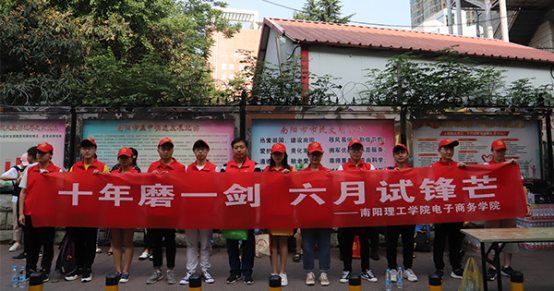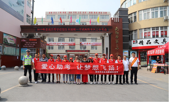 本网讯(通讯员/程海珊/左伟)“十年磨一剑,六月试锋芒”,又是一年高考季,为了给2019届高考考生营造良好的考试环境,帮助考生顺利高考,6月7日至8日,电子商务学院志愿者服务部携手大学生雷锋连与阳光爱心协会来到南阳市一中、三中和五中三个考点进行助力高考志愿服务活动。