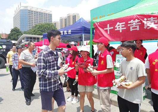 上午7时许,志愿者们分别到达三个考点现场,随后大学生志愿者们开始精心布置助考服务区。志愿者们不仅为考生准备大量的饮品,还为考生和家长准备了扇子、纸巾、应急药品等爱心物品。天气炎热,考生家长们等候在考场外如坐针毡,志愿者们为考生家长送去矿泉水,借此舒缓家长们的焦躁心情;同时也为服务于本次高考的交警、城管、环卫工人提供矿泉水。