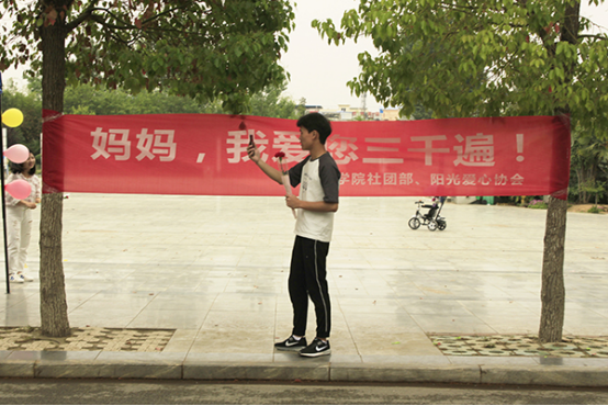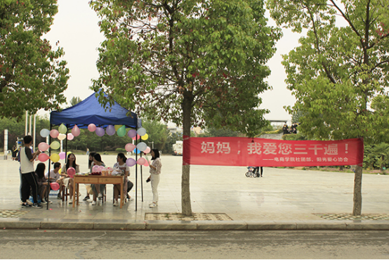 本网讯(通讯员\李香鲜)为大力弘扬中华民族传统美德,5月12日,在第109个母亲节来临之际,电子商务学院社团部联合阳光爱心协会在体育馆东侧举办“妈妈,我爱您三千遍”活动。