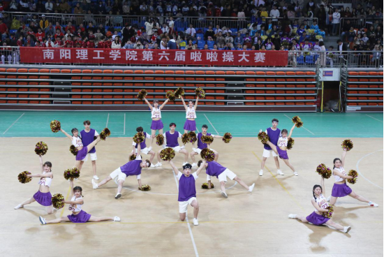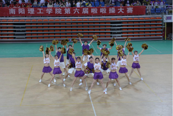我院啦啦操代表队作为第一支参赛队伍出场,队员们身着紫色与白色上衣,伴随着动感的音乐用激情四射的舞姿将全场气氛点燃。参赛队员们用多姿多彩的动作展现着电商学子青春的活力,明快奔放的舞姿挥洒出青春的风采,新颖别致的造型展现了力和美的结合。现场气氛十分高涨,电商学院学生不断为队员呐喊助威,现场观众也为我院的精彩表现致以热烈掌声。为了能够在比赛中脱颖而出,队员们不惜牺牲休息时间参加训练,以实际行动为学院争光添彩。最终,我院院啦啦操代表队荣获优秀奖,17级国贸学生于明辉荣获“优秀教练员”称号。