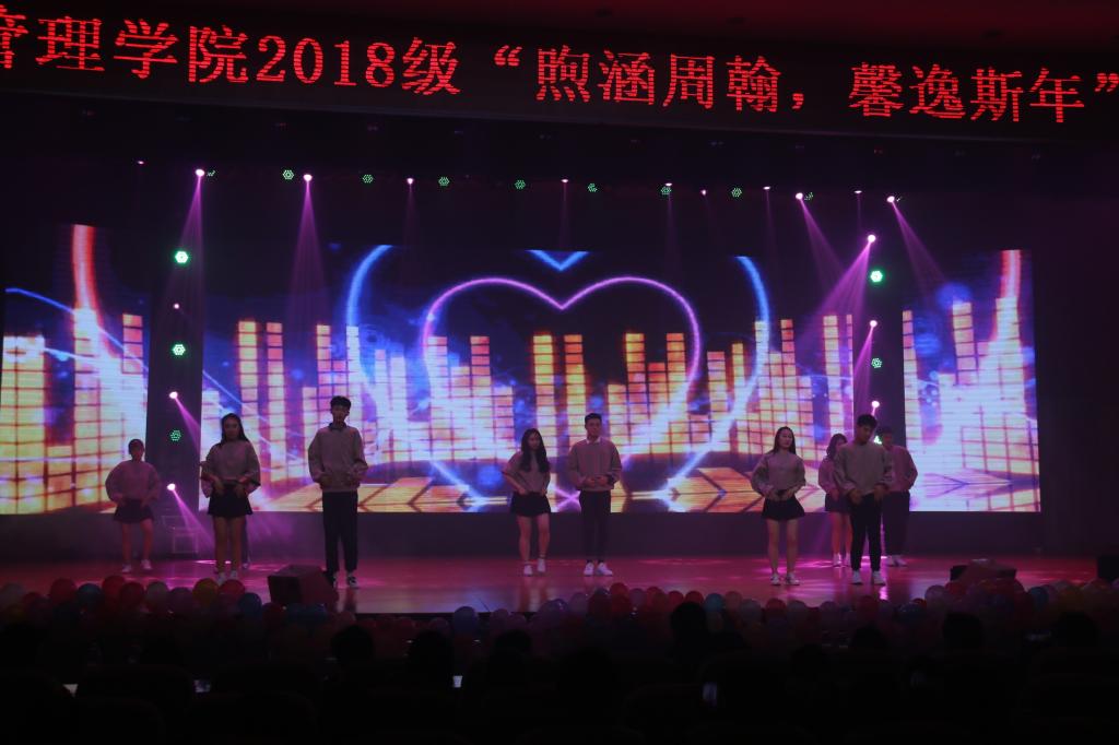 本网讯(学生记者/杨立露)11月9日,经济管理学院2018级"煦涵周翰,馨逸斯年"迎新晚会在毕业大厅浓情上演。近八百名师生观看此次晚会。