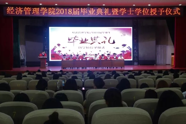 本网讯(特约记者/田进军 学生记者/李翔宇)6月20日上午,经济管理学院在我校毕业大厅隆重举行2018届毕业典礼暨学位授予仪式,经济管理学院院长姜保雨、副院长姬定中、副院长李晓霞、教师代表和2018届全体毕业生参加,经济管理学院党委书记张良主持。