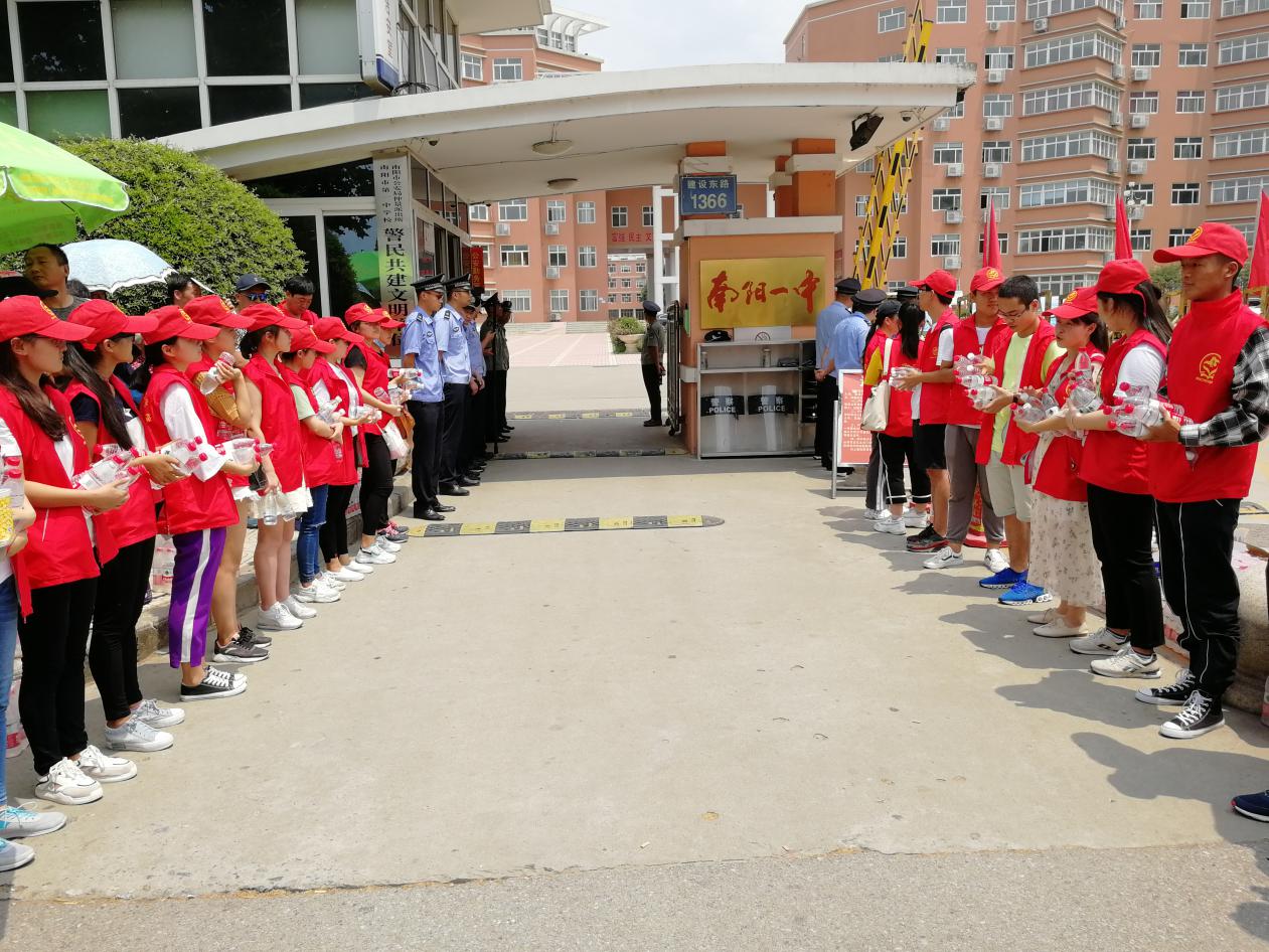 本网讯(通讯员/刘紫君)为了给2018届高考考生营造良好的考试环境,6月8日,高考第二天,电子商务学院志愿者服务部携手大学生雷锋连来到南阳市一中、南阳市二十一学校等考点进行志愿服务活动。